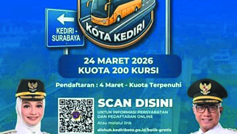 KEDIRI (OPTIMISI) – Program Balik Gratis Kota Kediri kembali hadir tahun ini. Pemerintah Kota Kediri melalui Dinas Perhubungan, menyiapkan kouta 200 kursi untuk keberangkatan pada 24 Maret 2026.